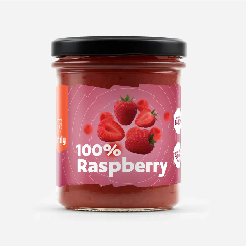 GRIZLY 100 % Himbeere ohne zugesetzten Zucker mit extra Fruchtstücken, 200 g
