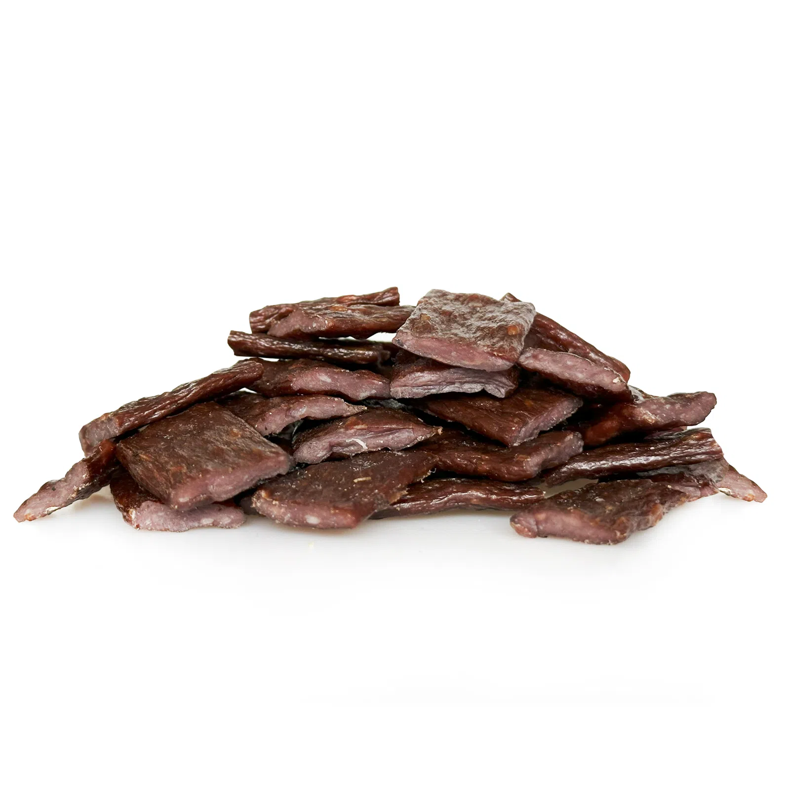 - hoher Proteingehalt: 50 g getrocknetes Fleisch entsprechen 170 g Steak