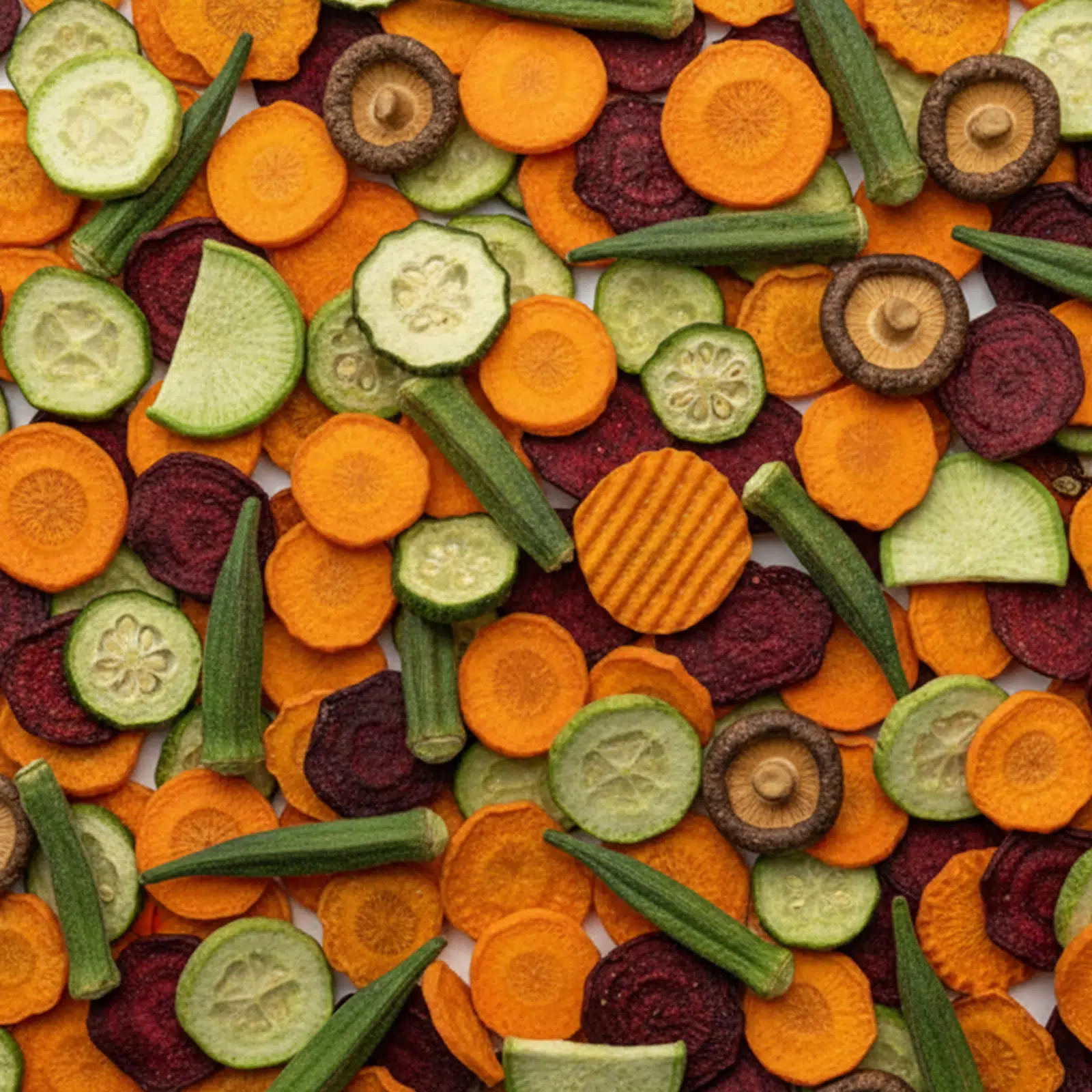Schonend vakuumfrittiert bei niedriger Temperatur. Dadurch behalten die Gemüse ihre natürliche Farbe und ihr volles Aroma und enthalten weniger Fett als herkömmliche Chips. Ein leichter Snack ohne schlechtes Gewissen, den Sie jederzeit genießen können.