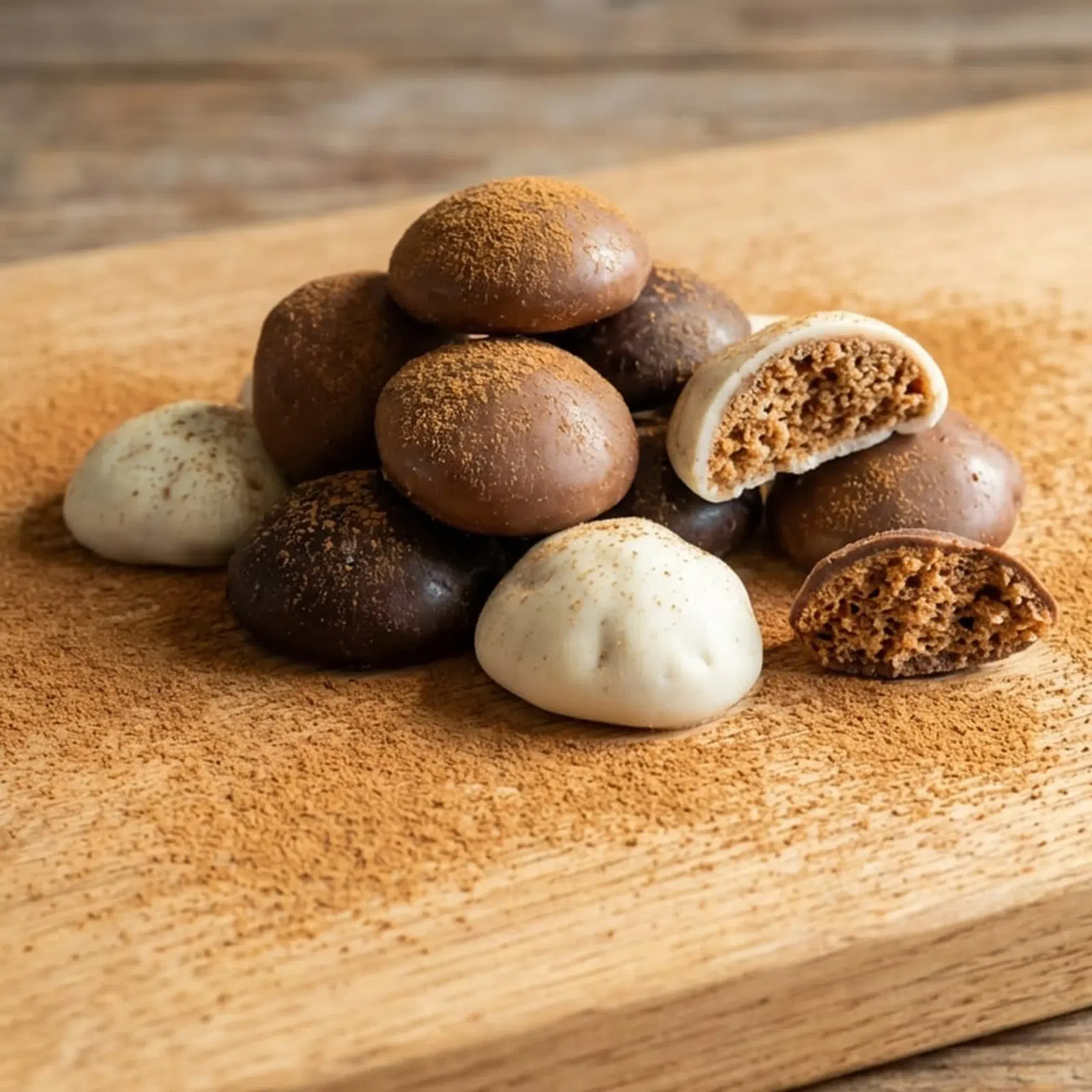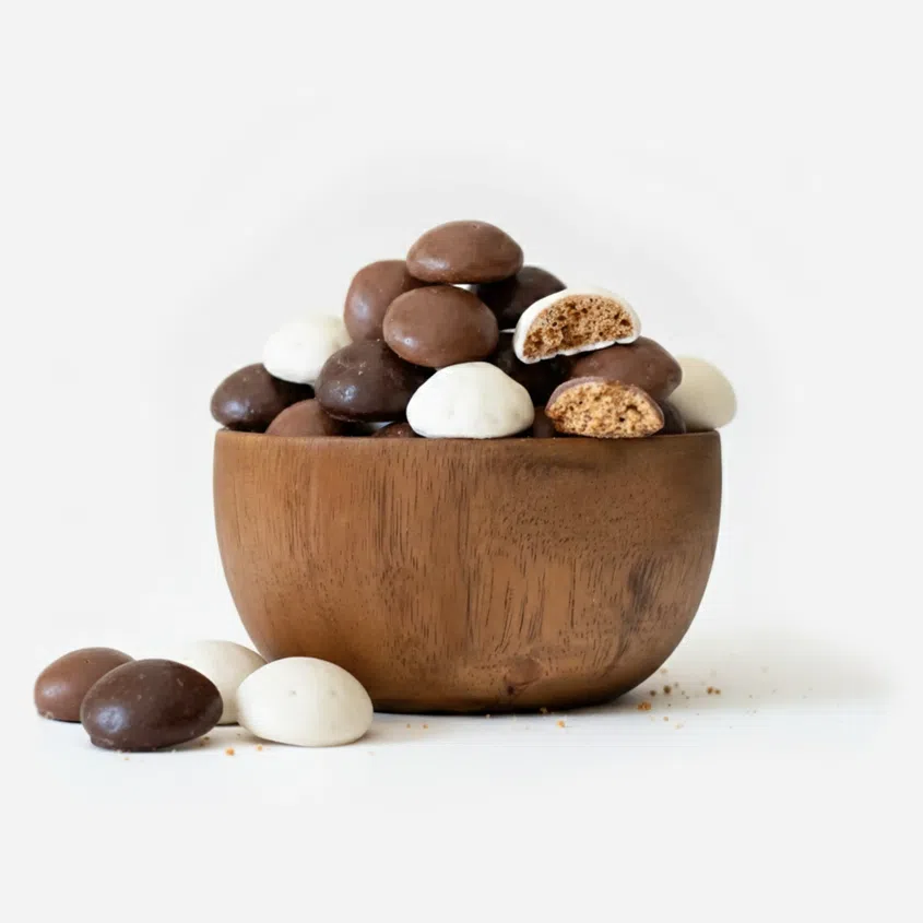 Dreifarbige Kekse in Schokolade begeistern alle Liebhaber süßer Köstlichkeiten mit einem Hauch von Tradition. Knusprige Lebkuchenkekse haben wir mit drei Sorten hochwertiger Schokolade überzogen – Vollmilch, Zartbitter und Weiß –, damit alle, die die ehrliche Kombination aus würzigem Geschmack und feiner Süße lieben, voll auf ihre Kosten kommen.