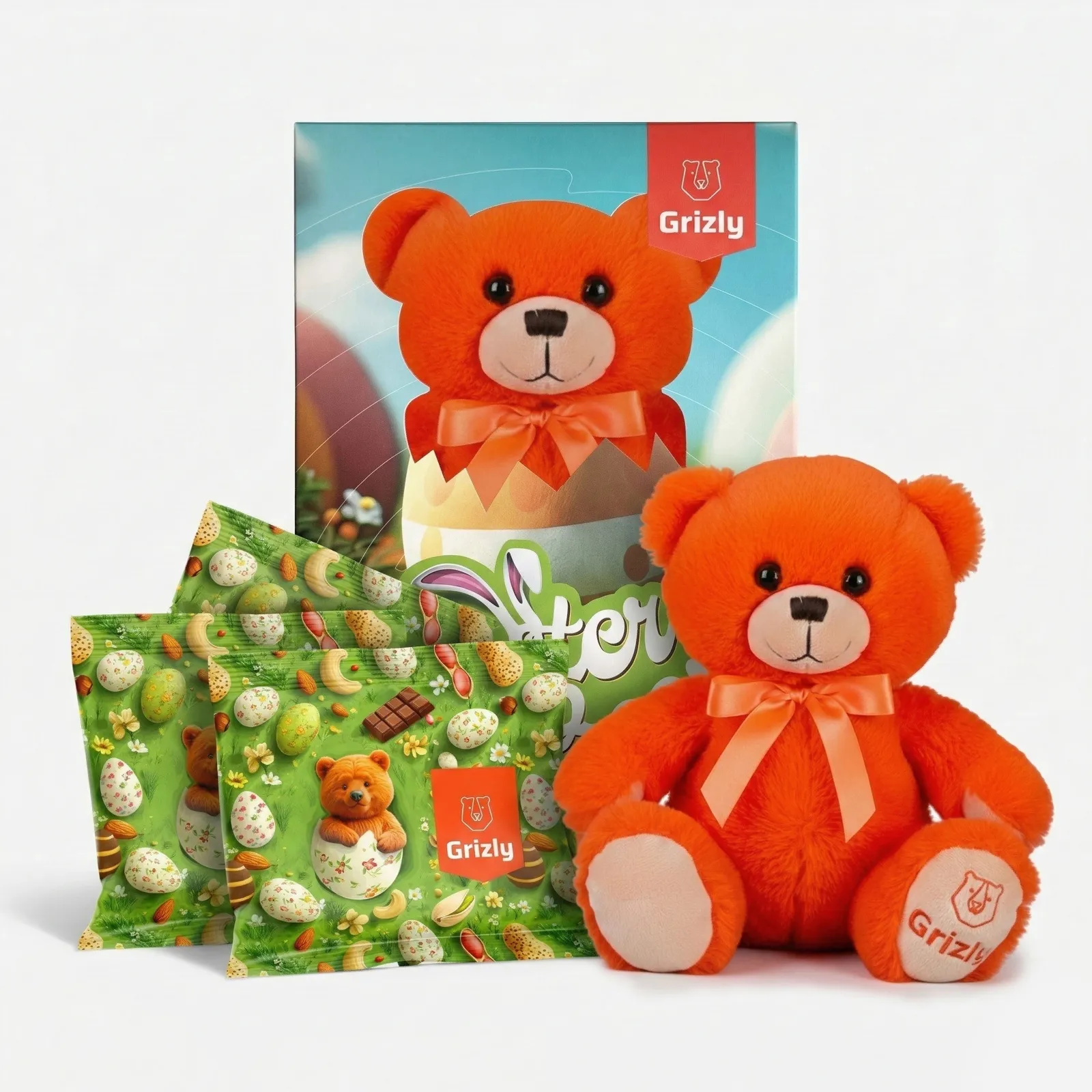 GRIZLY Oster-Geschenkset für Kinder: Kuschelbär & süße Leckereien, 400 g
