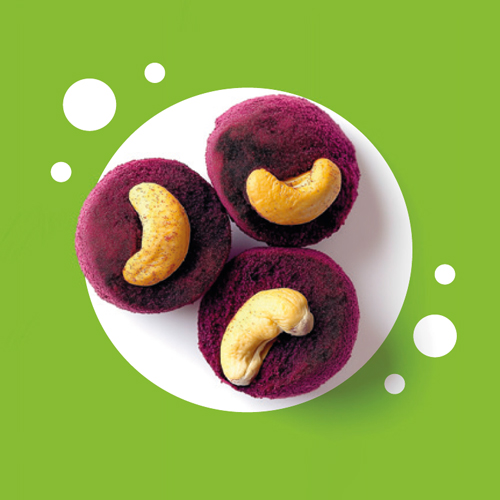CASHEWS IN LYOBLAUBEERHÜLLE. Verarbeitete Schalenfrüchte. Zutaten: Cashewkerne 50 %, gefriergetrocknete Blaubeeren (Pulver) 50 %. Kann Spuren von Erdnüssen und anderen Schalenfrüchten enthalten. Nährwerte pro 100 g: Energie 2057 kJ/ 491 kcal; Fett 25 g, davon gesättigte Fettsäuren 5,6 g; Kohlenhydrate 53 g, davon Zucker 16 g; Ballaststoffe 11,6 g; Eiweiß 9,2 g; Salz 0 g.