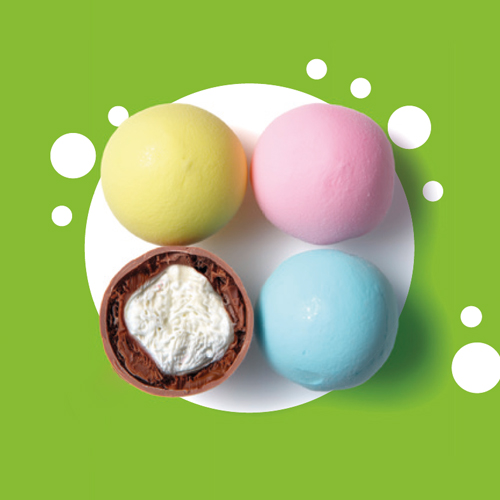 OSTER-KNUSPERDRAGEES. Knusprige Cerealienkugeln in Milchschokolade und Zuckerüberzug. Zutaten: Milchschokolade 52 % (Zucker, Vollmilchpulver, Kakaobutter, Kakaomasse, Emulgatoren: Sojalecithine; natürliches Vanillearoma, Kakaotrockenmasse: mind. 32 %), Zucker 35 %, knuspriger Cerealienkern 11 % (Weizenmehl, Vollkornweizenmehl, Zucker, Weizengluten, Weizenmalzmehl, Salz, Backtriebmittel: Natriumhydrogencarbonat), Reißstärke, Stabilisatoren: Gummi arabicum, Saccharoseester von Fettsäuren; Farbstoffe: Carotine, Kurkumin, Spirulina-Extrakt, Karmin; Maltodextrin; Überzugsmittel: Carnaubawachs. Kann Spuren von Erdnüssen und Schalenfrüchten enthalten. Nährwerte pro 100 g: Energie 1982 kJ/ 472 kcal; Fett 17,2 g, davon gesättigte Fettsäuren 10,5 g; Kohlenhydrate 74 g, davon Zucker 65 g; Ballaststoffe 2,2 g; Eiweiß 4,4 g; Salz 0,25 g.