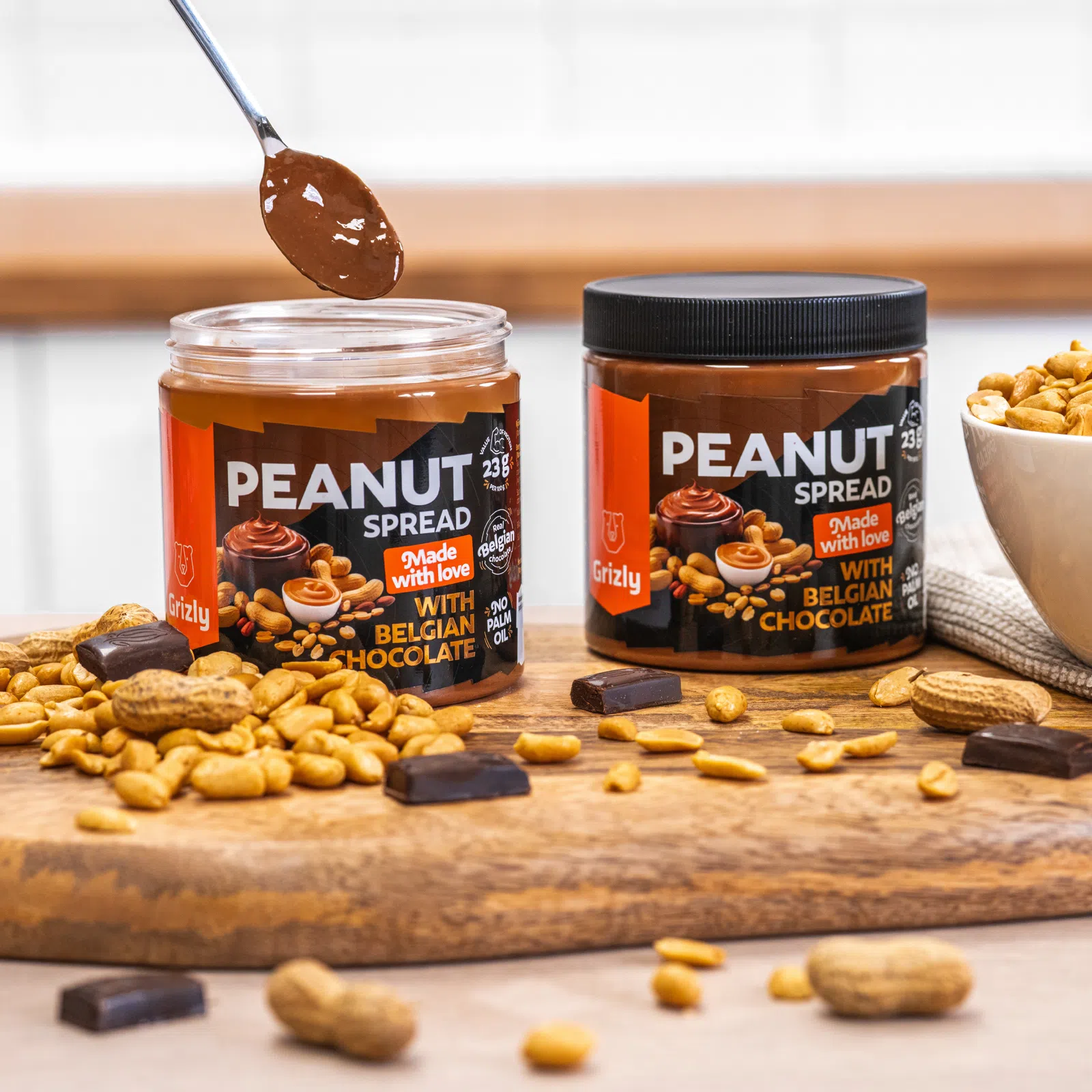GRIZLY Erdnussbutter mit dunkler belgischer Schokolade ist ein großartiger Snack. Erdnüsse sind reich an gesunden Fetten, Proteinen und Ballaststoffen, Schokolade an Antioxidantien.