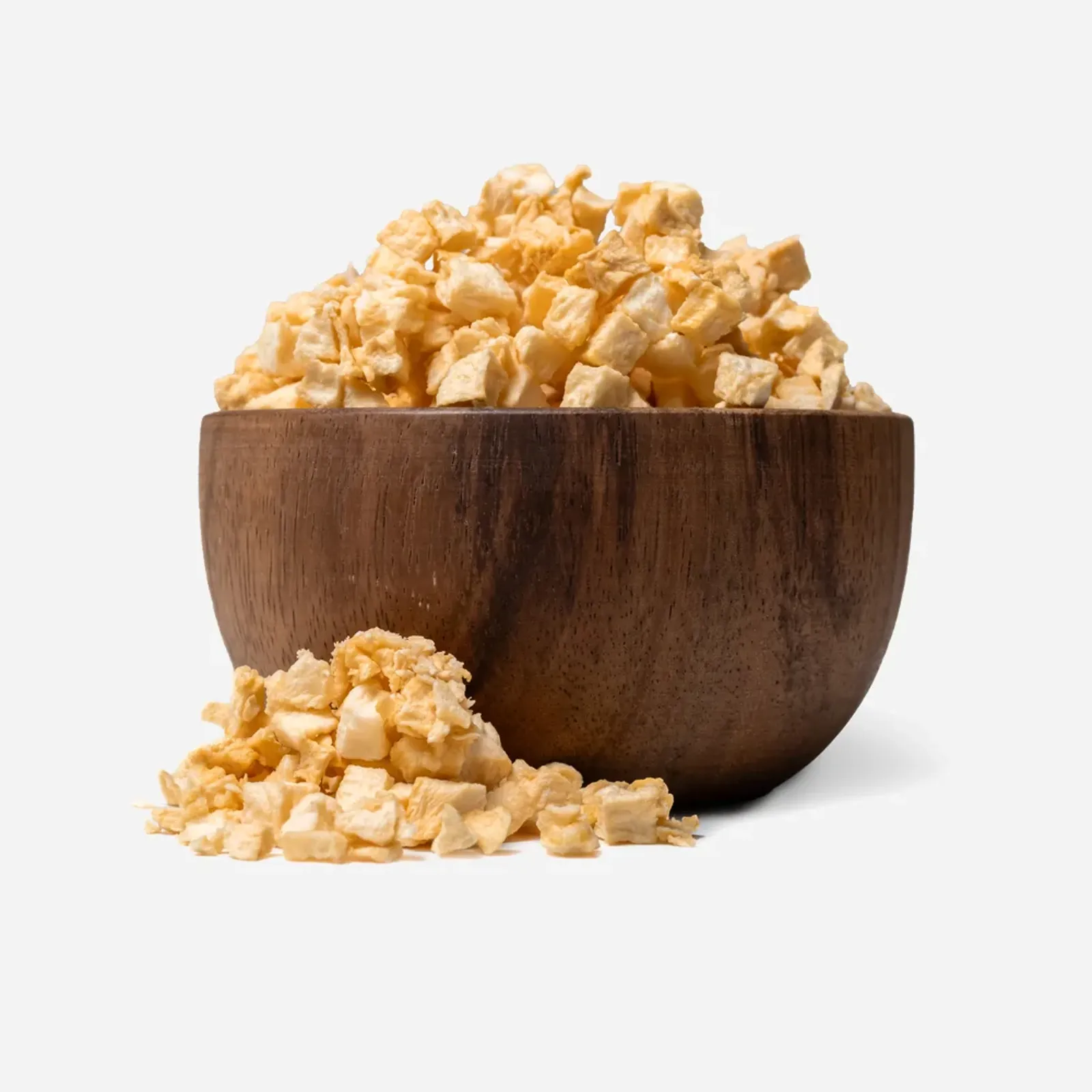 Die knackigen Apfelstücke können Sie jederzeit am Tag genießen. Perfekt für das morgendliche Porridge, als Snack im weißen Joghurt oder als leckeres Topping für hausgemachte Desserts. Dank dem schonenden Gefriertrocknungsprozess bleiben die wertvollen Nährstoffe erhalten.