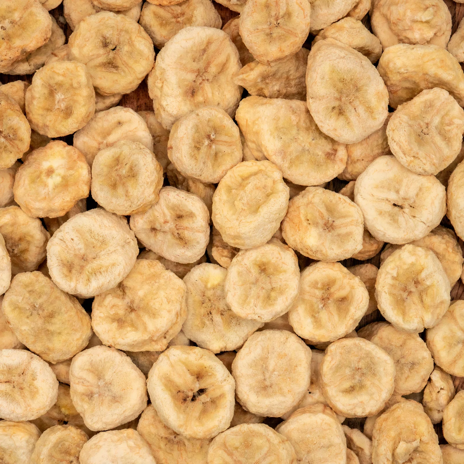 Die knusprigen Stücke von gefriergetrockneten Bananen sollten Sie auf jeden Fall probieren! Und Sie können das ganze Jahr über darauf zugreifen, denn dank des speziellen Gefriertrocknungsprozesses schmecken sie wie frisch geerntet, auch wenn seitdem schon einige Zeit vergangen ist. Die gefriergetrockneten Bananenscheiben werden aus reifen und sorgfältig ausgewählten Früchten hergestellt. Sie sind angenehm knusprig und schmecken toll. Sie eignen sich wunderbar als Snack für zwischendurch oder, wenn Sie gerne neue Geschmäcker ausprobieren, zur Zubereitung von hausgemachten Desserts, in Granola oder in einem bunten Smoothie.