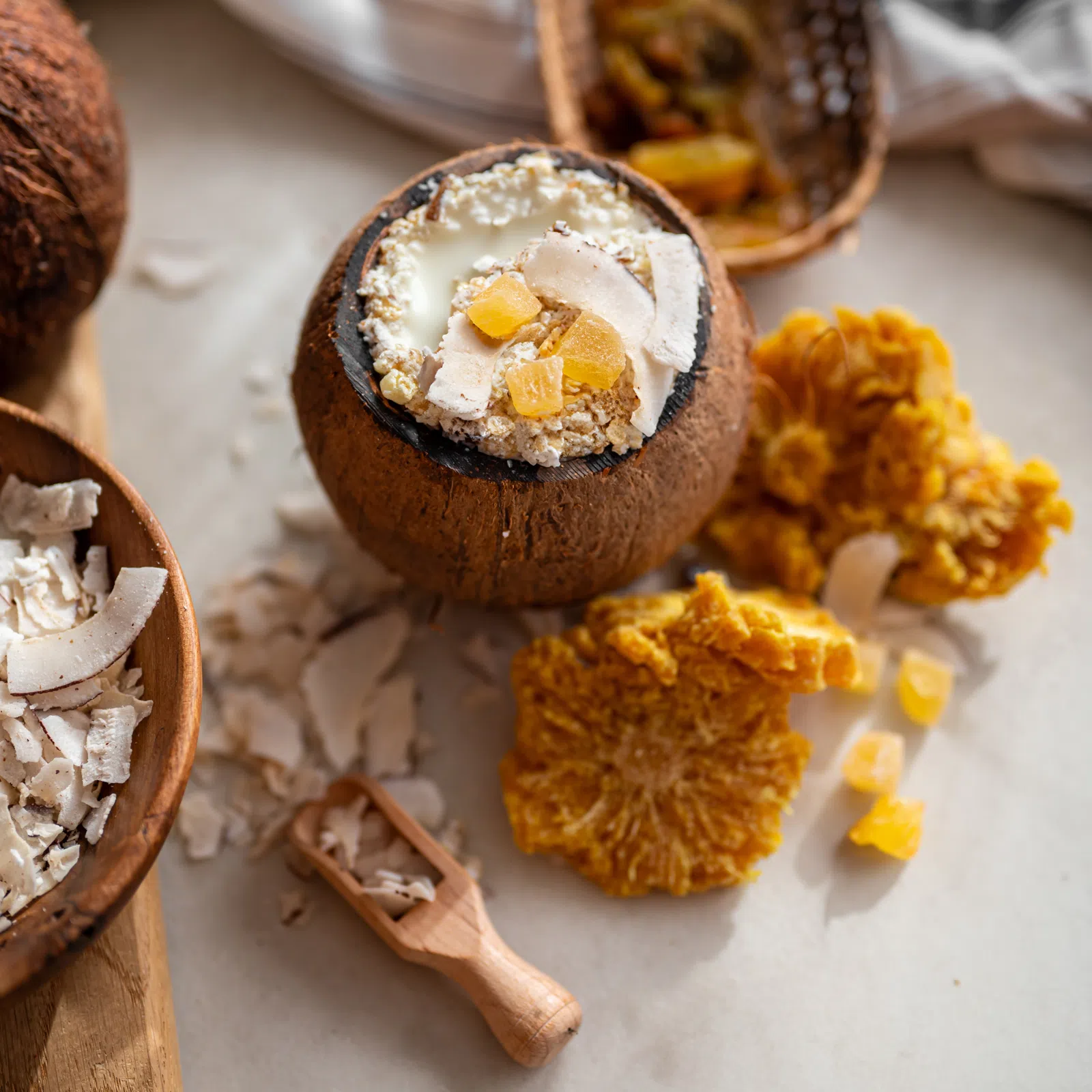 Frühstück wie im exotischen Paradies. Genau so wirst du dich fühlen, wenn du dir morgens unseren glutenfreien Haferbrei mit Kokos- und Ananasgeschmack zubereitest. In nur wenigen Minuten steht er auf dem Tisch.