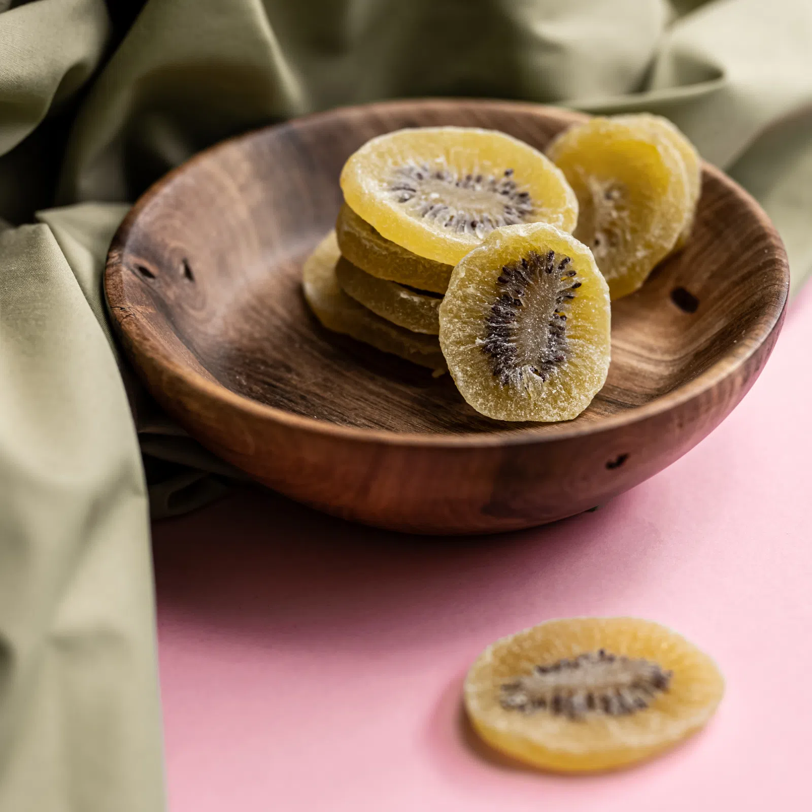 Lassen Sie sich in das Paradies exotischer Geschmäcker entführen und probieren Sie unser getrocknetes Kiwi. Es verwandelt sich im Handumdrehen in einen köstlichen Snack, der keinerlei Farbstoffe enthält