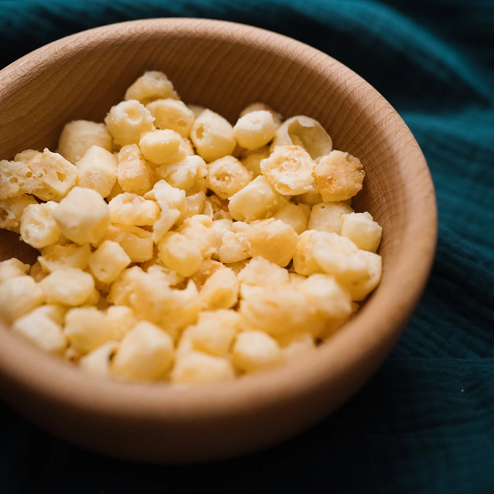 Drei beliebte Käsesorten - Emmentaler, Gouda und Cheddar - in einer etwas anderen Form. Haben Sie schon getrockneten Käse probiert? Er ist knusprig, duftend und außerdem in einem praktischen Beutel, der sich leicht wieder verschließen lässt. Unser Mix aus getrocknetem Käse ist immer griffbereit, die Packung muss nicht im Kühlschrank aufbewahrt werden. Käse schmeckt nicht nur gut, sondern hilft auch, Proteine zu ergänzen, egal ob Sie bei der Arbeit, in der Schule oder auf einem Ausflug sind. Der Käsemix ist großartig als schneller Snack, zusammen mit Gemüse und Nüssen, und auch als ungewöhnliche Leckerei zum Wein. Streuen Sie einfach ein paar Stücke auf Ihr Lieblingsessen, fügen Sie es zu einem Salat hinzu oder machen Sie sich eine hausgemachte salzige Granola.