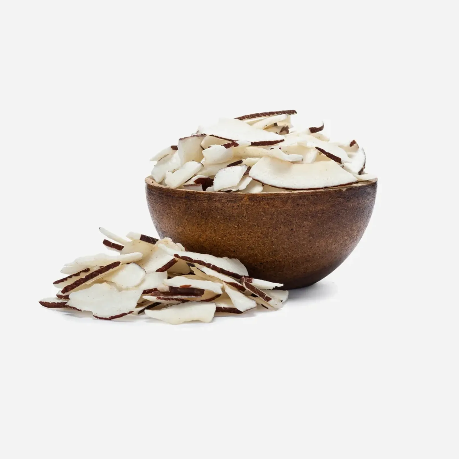 - Zusammensetzung: Kokosscheiben mit braunem Rand 100%.