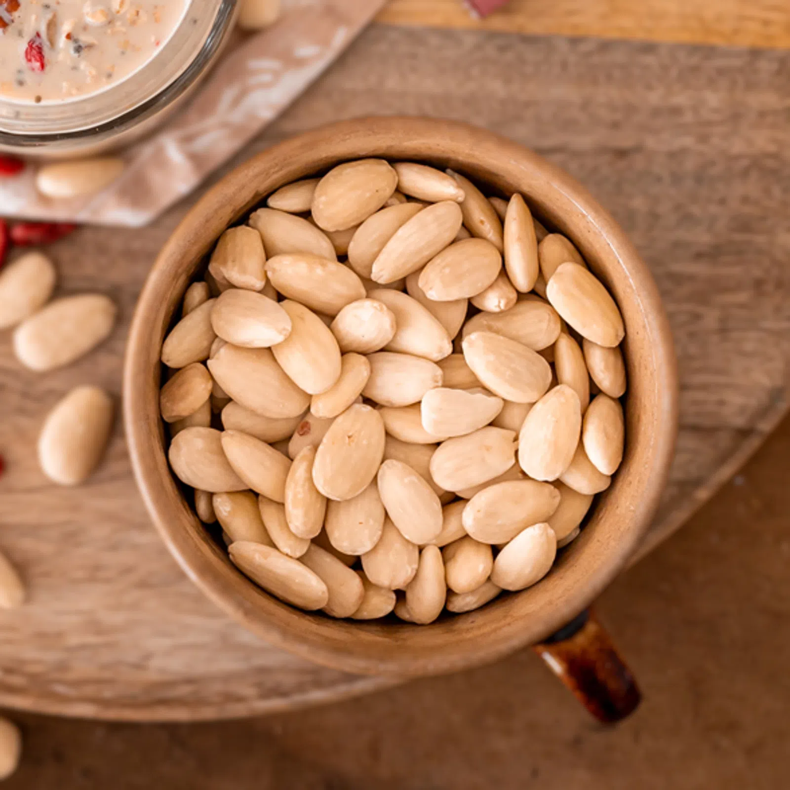 Gönnen Sie sich luxuriöse Zartheit ohne Aufwand. Unsere Mandeln haben wir für Sie geschält, sodass sie sofort einsatzbereit sind. Sie haben einen süßeren Geschmack, eine cremige Farbe und sind angenehm knackig. Ideal für Weihnachtsgebäck, zur Herstellung einer hausgemachten pflanzlichen Milchalternative oder für alle, die die Haut stört.