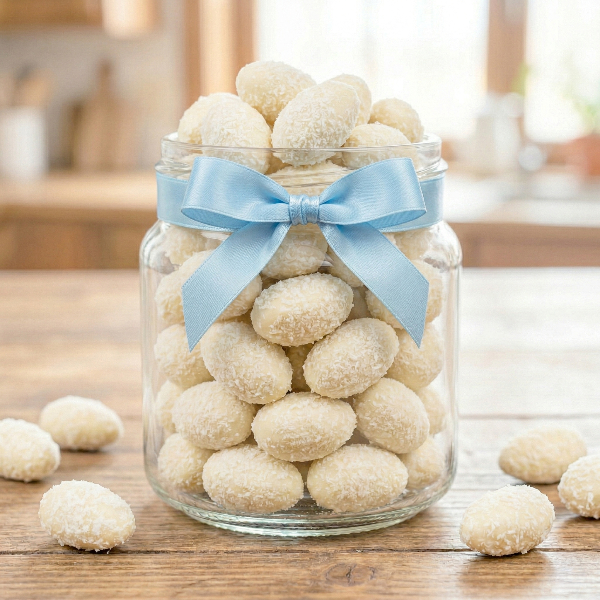 Sorgfältig ausgewählte Mandeln in erstklassiger weißer Schokolade und knusprigem Kokos. Jeder Bissen bringt eine perfekt ausgewogene Kombination aus intensivem Geschmack und feiner Süße.