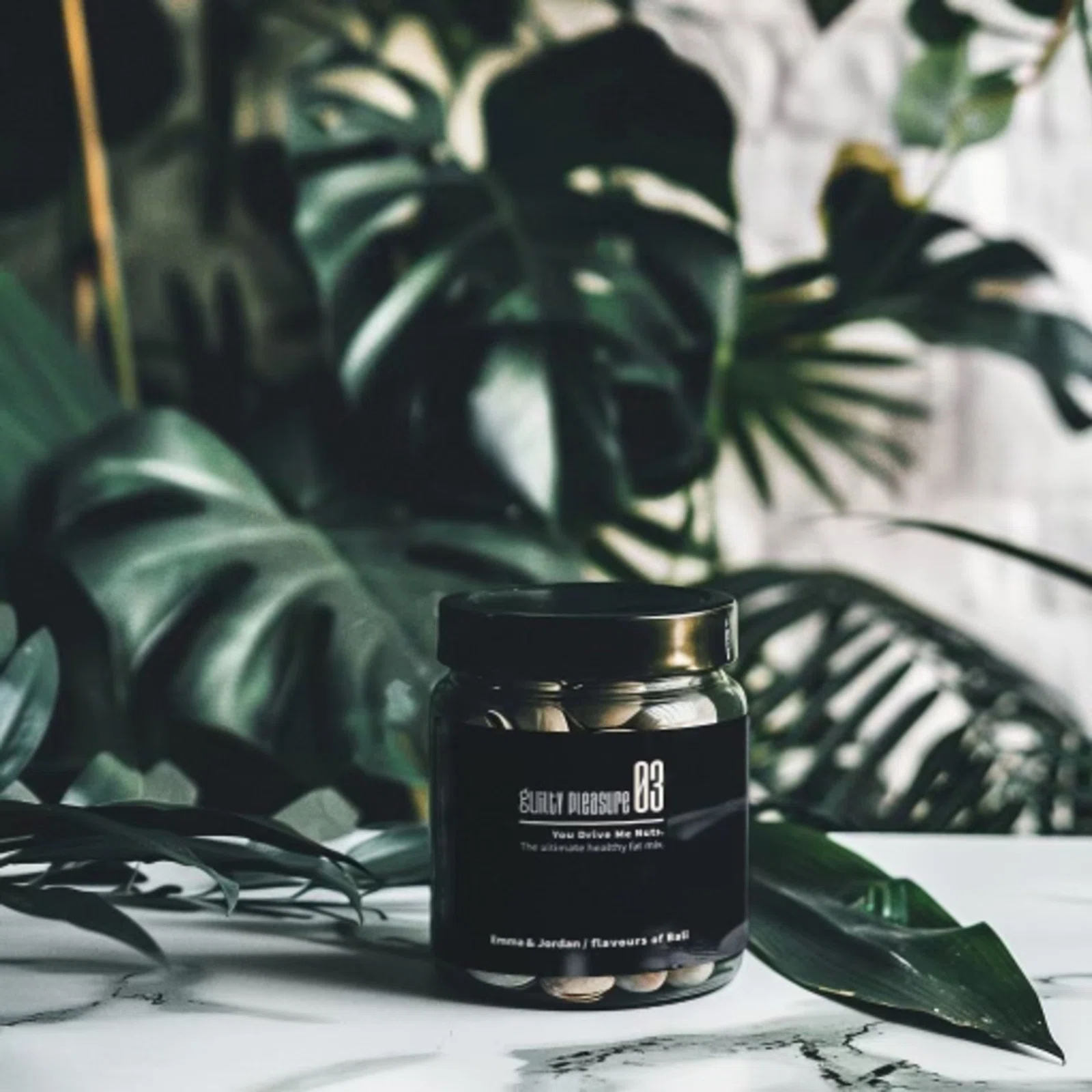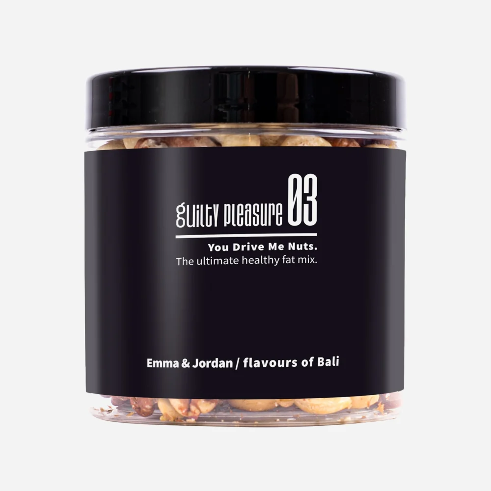 Exotisches Vergnügen aus dem fernen Bali! Probieren Sie Guilty Pleasure 03, die Nussmischung aus der exklusiven Reihe Flavours of Bali von Emma Smetana und Jordan Haj. Wir haben sie aus Pekannüssen, Cashewkernen, Macadamianüssen, Pistazienkernen und Rosinen zusammengestellt.