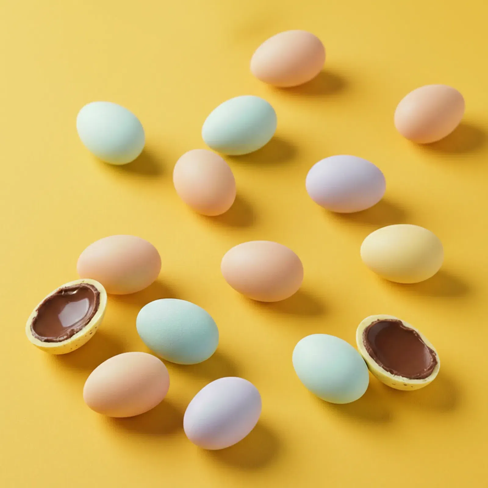 Ein Osterklassiker, der niemals enttäuscht. Bunte Schokoladeneier mit einer knusprigen Zuckerschicht verbergen eine zarte, köstliche Schokoladenfüllung, die auf der Zunge wunderbar zergeht. Perfekt für die Osterüberraschung für Kinder, den festlichen Tisch oder einfach zum süßen Naschen im Frühling zu Hause.