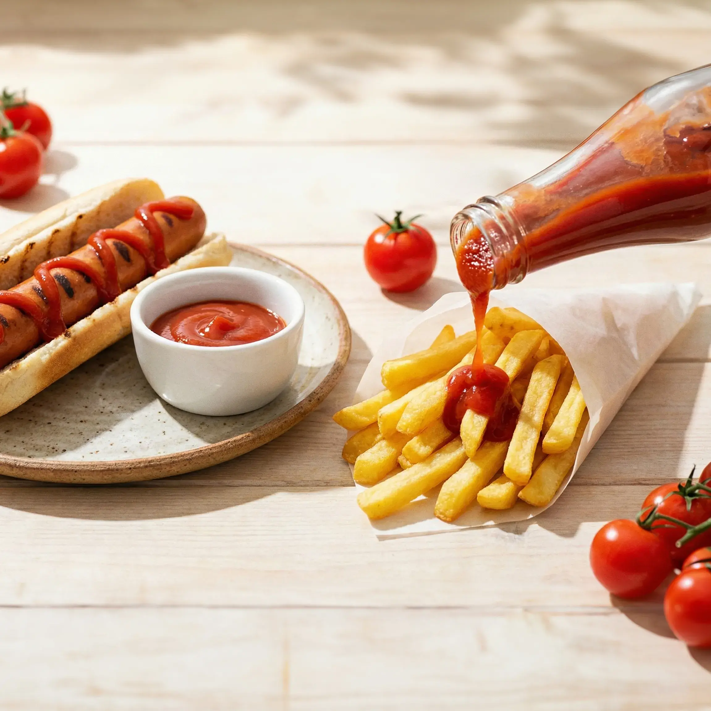 Ehrlicher Ketchup mit vollem Tomatengeschmack, den du lieben wirst. Die Bezeichnung „extra“ bedeutet einen höheren Tomatenanteil als bei herkömmlichem Ketchup.