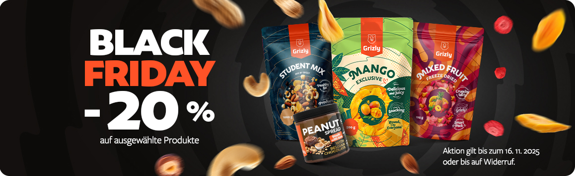 Hurra! Wir starten die beliebteste Aktion des Jahres. Jetzt kannst du 480 Grizly-Produkte mit 20% Rabatt kaufen. Sichern Sie sich vorteilhafte Vorräte für den Winter, leckere Geschenke im Voraus oder einfach sündhaft gutes Naschwerk für zwischendurch.